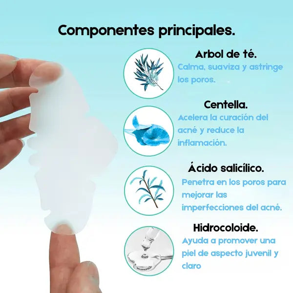- Hidrocoloide – Absorbe grasa e impurezas, mientras protege la piel.